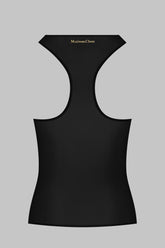 Tanktop gefertigt aus einem feinen Jersey mit glänzenden und dezent transparenten Reflexen. Der runde Ausschnitt und die tiefen Armausschnitte verleihen einen retro-schicken Stil. Racerback-Rücken für eine perfekte Muskelshirt-Silhouette. Eingefasst mit einem ultraflachen und komfortablen Gummiband. Das goldene Maison Close Logo ist auf dem Rücken angebracht.