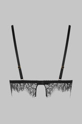Triangel-BH aus dehnbarem Plumetis-Tüll an den Körbchen. Die mit Goldkreuzen geschmückten Träger im Strumpfbandstil sind verstellbar und nur vorne abnehmbar für den offenen Effekt. Verstellbarer Häkchenverschluss am Rücken. Starre Wimpernspitze schmeichelt unter der Brust.