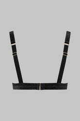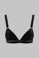 Der ROCOCO-Triangel-BH aus Samt wurde entworfen, um die Brust sanft zu umhüllen. Ohne Bügel bietet er Halt durch feine Schaumstoff-Cups, die mit gestepptem Samt überzogen sind und eine retroinspirierte Form zeichnen.